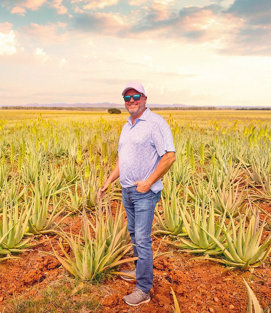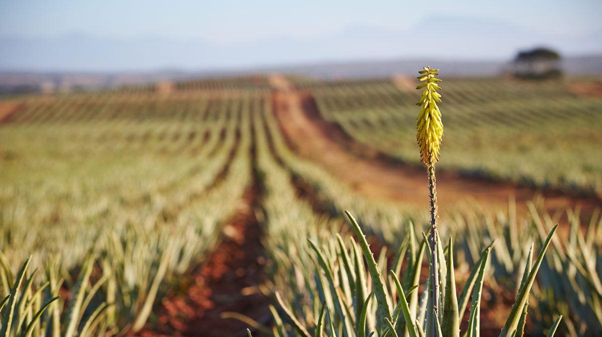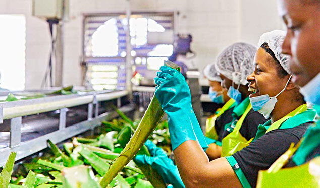 Οι φυτείες αλόης χρησιμοποιούν ηλιακή ενέργεια και σύστημα σταγόνων για μείωση νερού κατά 90%, ενώ κάθε προϊόν περνά αυστηρούς ποιοτικούς ελέγχους.