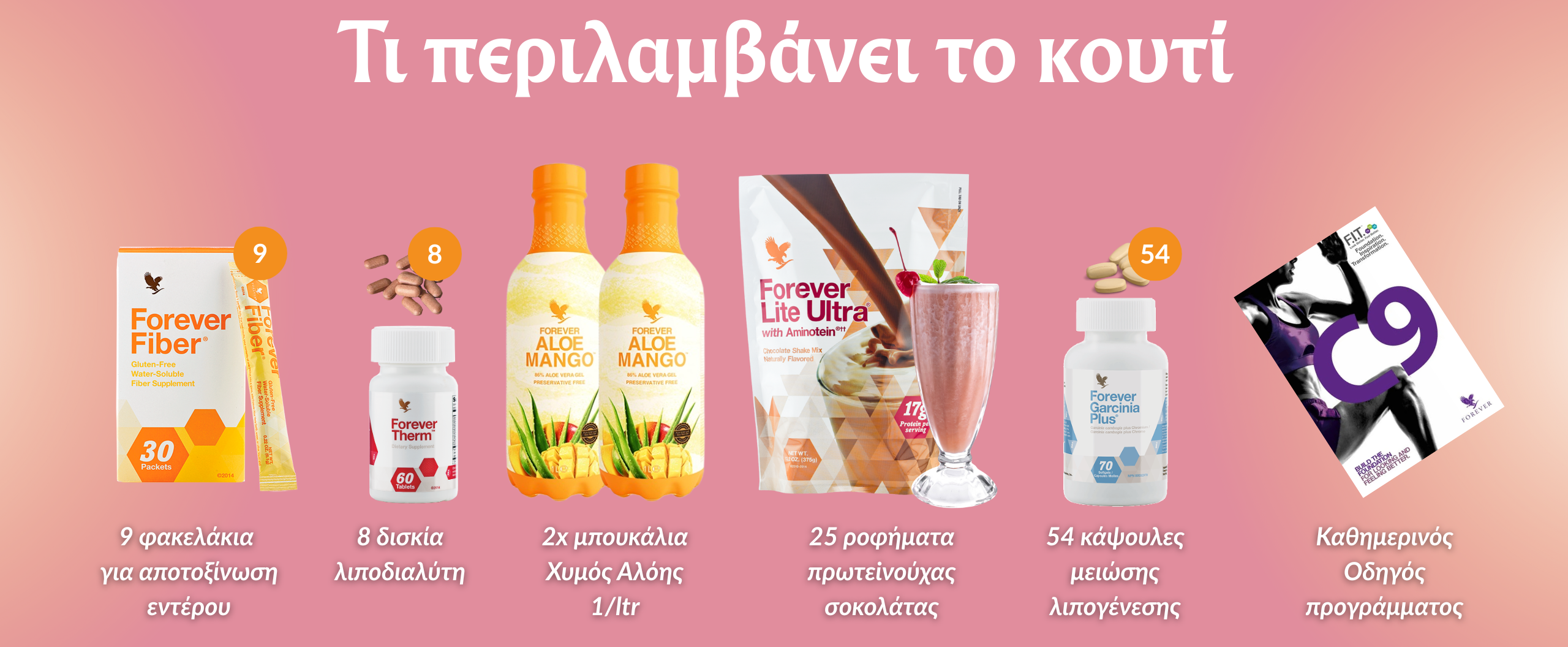 Το Clean 9 είναι ένα οργανωμένο πρόγραμμα 9 ημερών που περιλαμβάνει ροφήματα υποκατάστασης γεύματος, φυτικές ίνες και καθοδηγούμενο πλάνο, σχεδιασμένο για να βοηθά στην απώλεια βάρους, στην ολική αποτοξίνωση του οργανισμού, βελτίωση της ενέργειας και στην επαναφορά πιο ισορροπημένων καθημερινών συνηθειών.