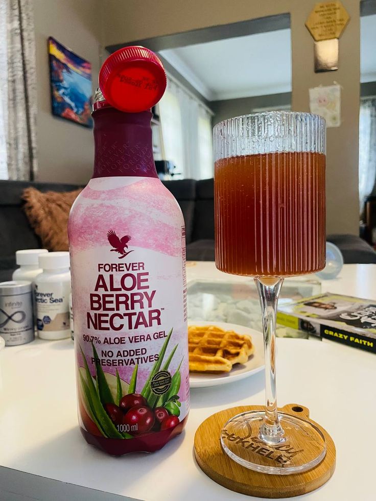 Είναι 100% φυσικό και βιολογικό, με 90,7% αγνό, σταθεροποιημένο ζελέ αλόης βέρα. Συνδυάζεται με 4% συμπυκνωμένο χυμό μήλου και 2% cranberry, που προσθέτουν φυσική γεύση και επιπλέον θρεπτικά οφέλη.